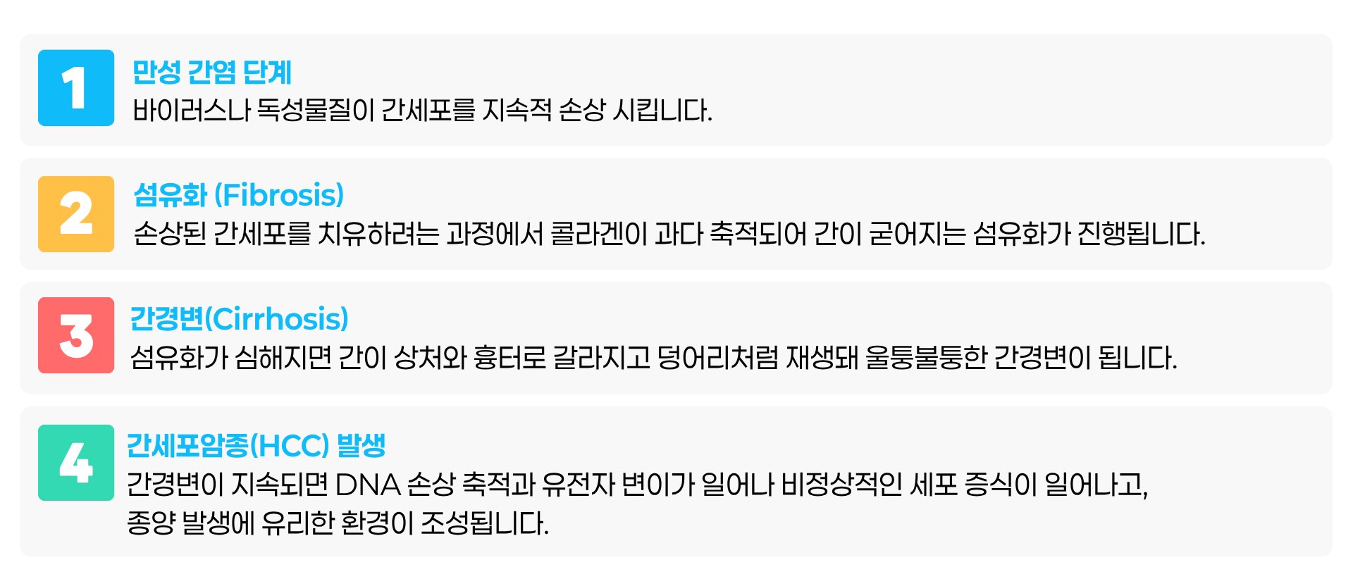 간은 병이 진행돼도 증상이 뚜렷하지 않아, 정기적인 혈액·초음파 검사가 필요합니다.